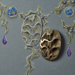 Inspired by rugged landscapes and the raw beauty of nature, Rock is a striking necklace that captures the essence of mountains, stone, and earth in bead embroidery. Textured surfaces, rich metal tones, sparkling crystals, and a stunning pyritized ammonite come together to create a piece that feels both precious and powerfully organic.